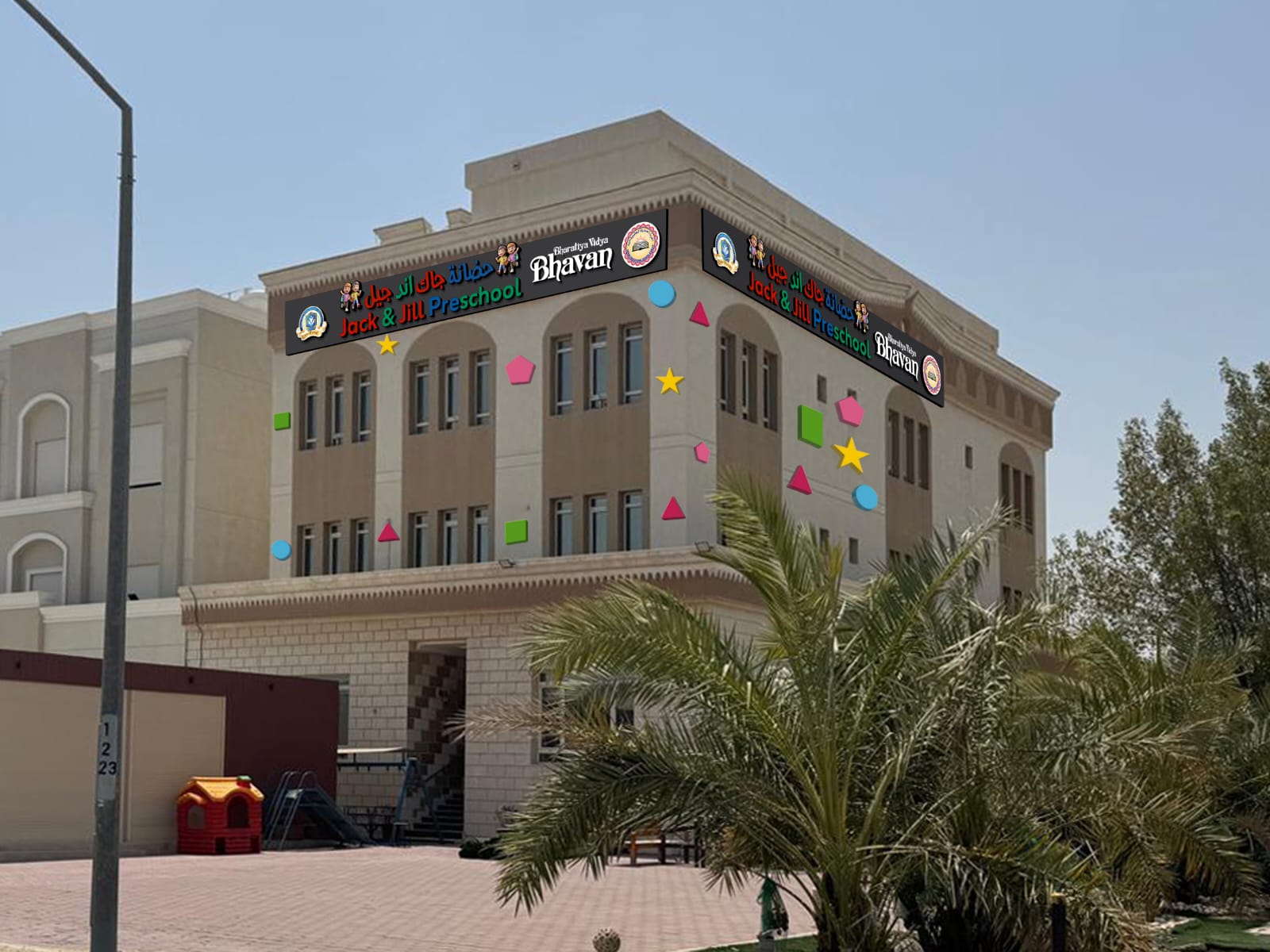 Jack and Jill Pre-School – Bhavans situated at Mangaf is a sister concern of IES – Bharatiya Vidya Bhavan, Kuwait. A school for tiny tots with a difference to impart value based, child centred education was a long cherished dream of our revered chairman – Mr. N. K. Ramachadran Menon, a visionary in the field of education in the State of Kuwait. The dream attained fruition in the month of September 2008.